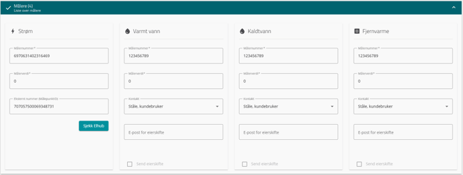 - Ved bestilling av strøm og det velges en strømleverandør, er det viktig å få med riktig målernummer for videreføring.