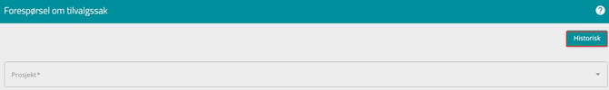 - Historisk: Etter du har sendt inn tilvalgssak, kan du se en oversikt over dine innmeldte tilvalgssaker ved å trykke på «Historisk»-knappen øverst til høyre i skjemaet. Her finner du informasjon om sakens status (Avventer, Godkjent, Avvist), samt en oversikt over hva du har lastet opp og i hvilken filkategori.
